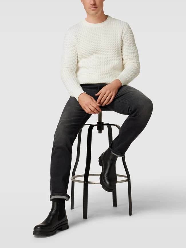 Der Strickpullover von Esprit ist aus reiner Baumwolle gefertigt und gerade geschnitten. Er zeigt sich mit Grobstrick und geripptem Rundhalsausschnitt.